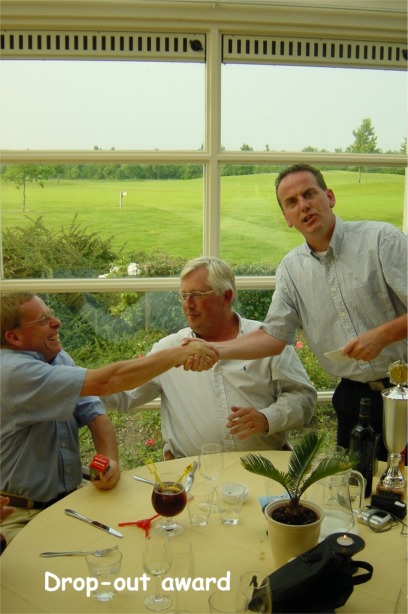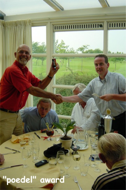 Hieronder vindt u foto's van deze mooie dag bestaande uit achtereenvolgens enkele groepsfoto's (met dank aan de sheriff van de Batouwe) van de CMG veteranen, een overzicht van de persoonlijke stijlen (of het ontbreken daarvan) op tee 1, de borrel na afloop (hoe warm(-gelopen) en hoe ver het was) en tot slot beelden van diner, prijsuitreiking en de gelukkige winnaar!